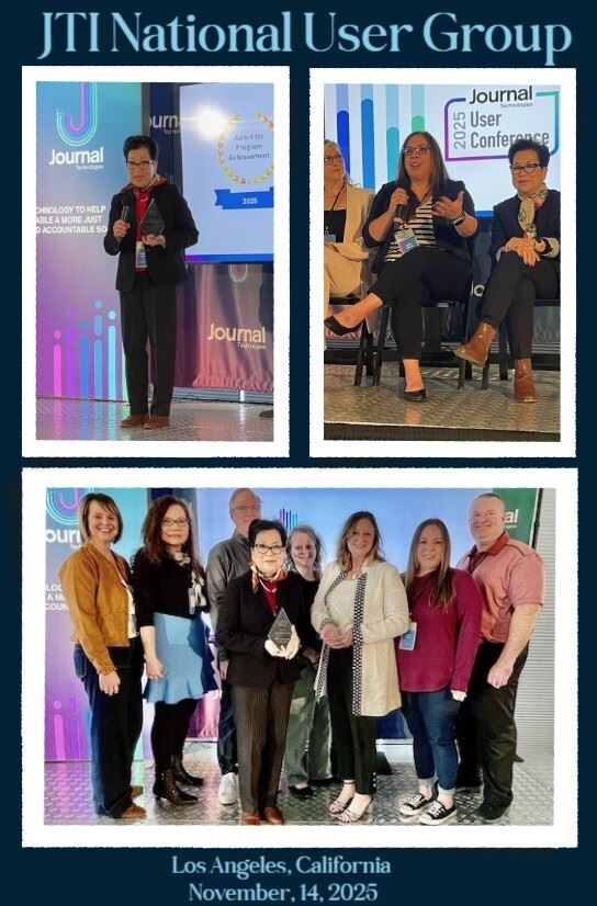 While our team attended the JTI National User Group Conference, our office (along with the Courts) was presented with the Program Achievement Award for our ICMS implementation. Winnie (Director of JIS) accepted the award on behalf of both offices.